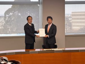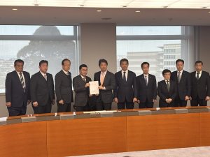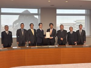 令和8年2月5日、坂東市商工会の上坂理一会長は、地下鉄8号線建設促進並びに誘致期成同盟会(副会長:木村敏文 坂東市長)らとともに茨城県庁を訪れ、大井川和彦茨城県知事に対し、東京8号線の早期建設および延伸誘致に関する要望書を提出いたしました。
